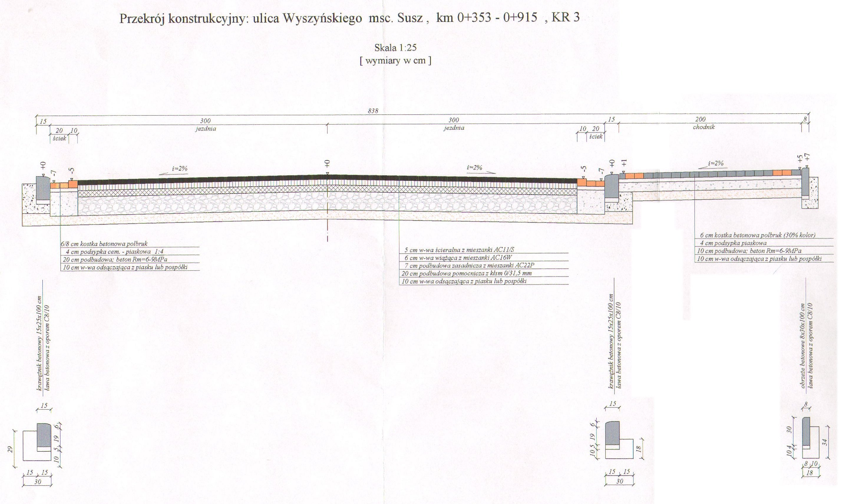 - „Przebudowa ul. Wyszyńskiego na dwuwarstwową nawierzchnie KR 3 z masy asfaltobetonowej – warstwa wiążąca gr. 6cm, warstwa ścieralna gr.5cm o powierzchni pasa drogowego – 1.700,0 m2, zjazdy bramowe 294,0m2 z kostki brukowej gr. 8 cm oraz budowa chodnika o powierzchni 372,0m2 z „POLBRUKU” gr. 6cm„